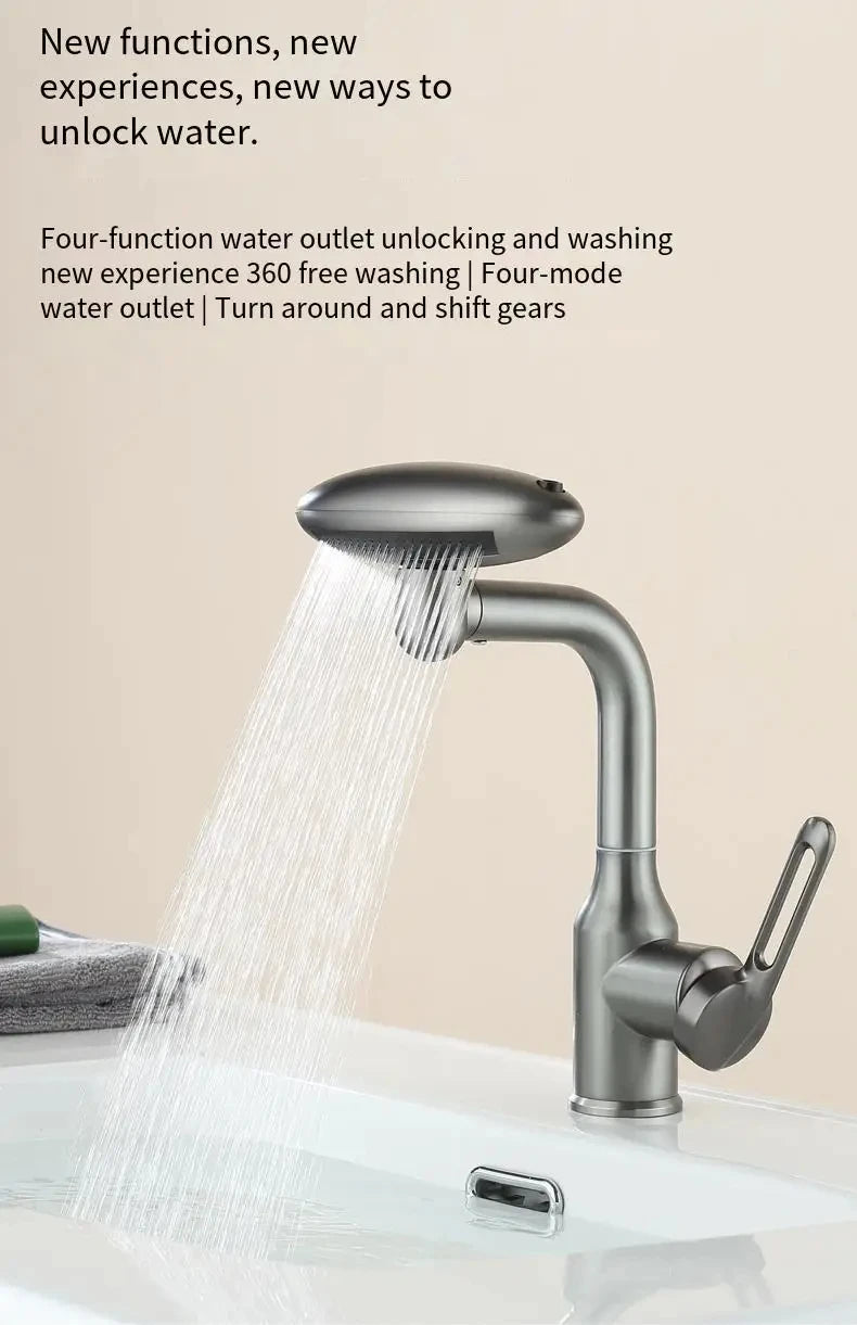 360° Rotation Modern Multifunctional Waterfall intelligent Bathroom Faucet 4 Water Outlet Mode Hot & Cold Water kitchen Faucet